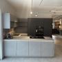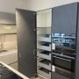 Diese moderne Küche besticht durch ihr modernes Design und die hochwertigen Materialien. Die Kombination aus hellem Grau und dunklem Anthrazit verleiht dem Raum eine elegante Atmosphäre. Die Kochinsel ist nicht nur ein optisches Highlight, sondern bietet auch zusätzlichen Arbeits- und Stauraum. D...