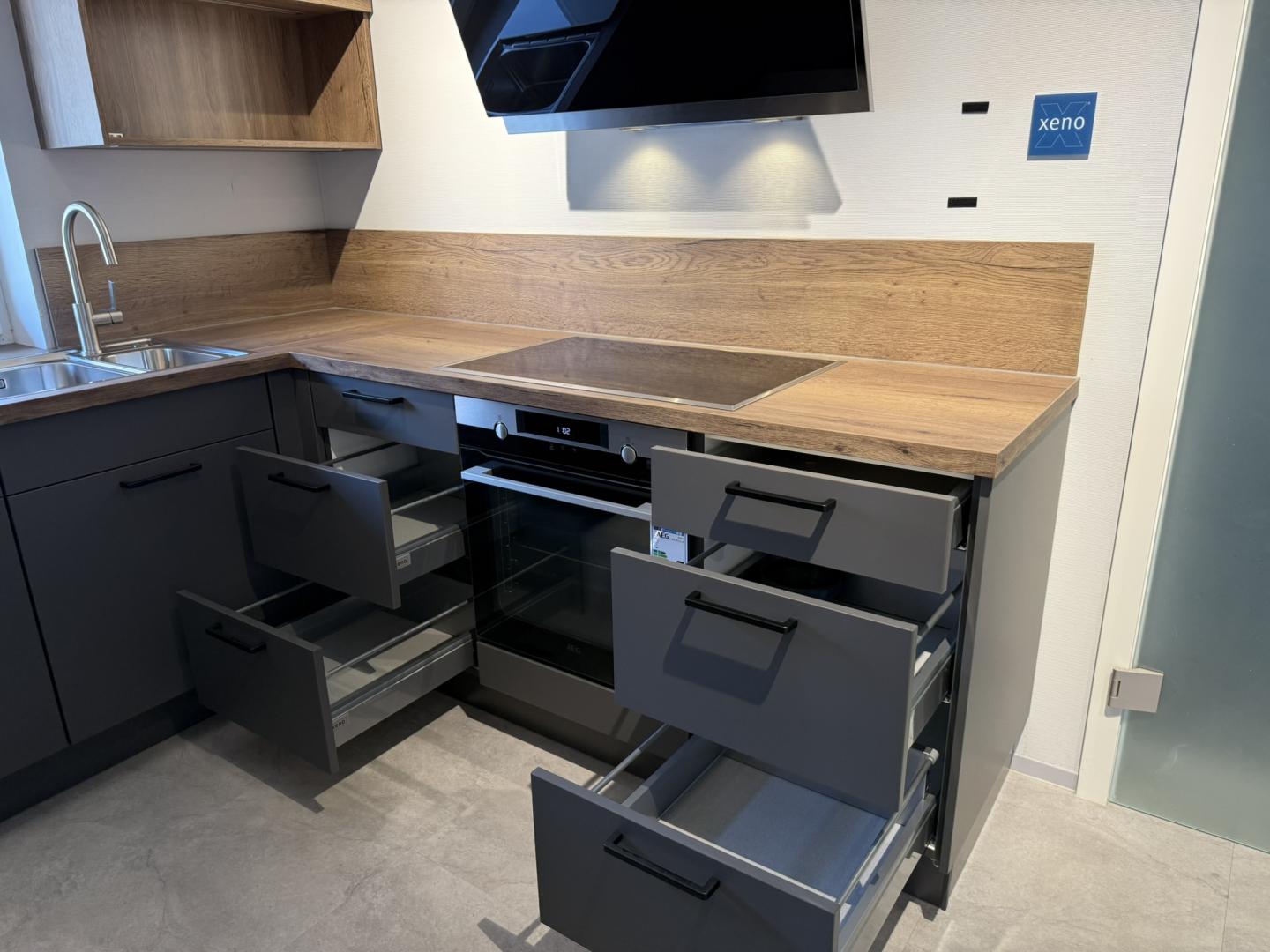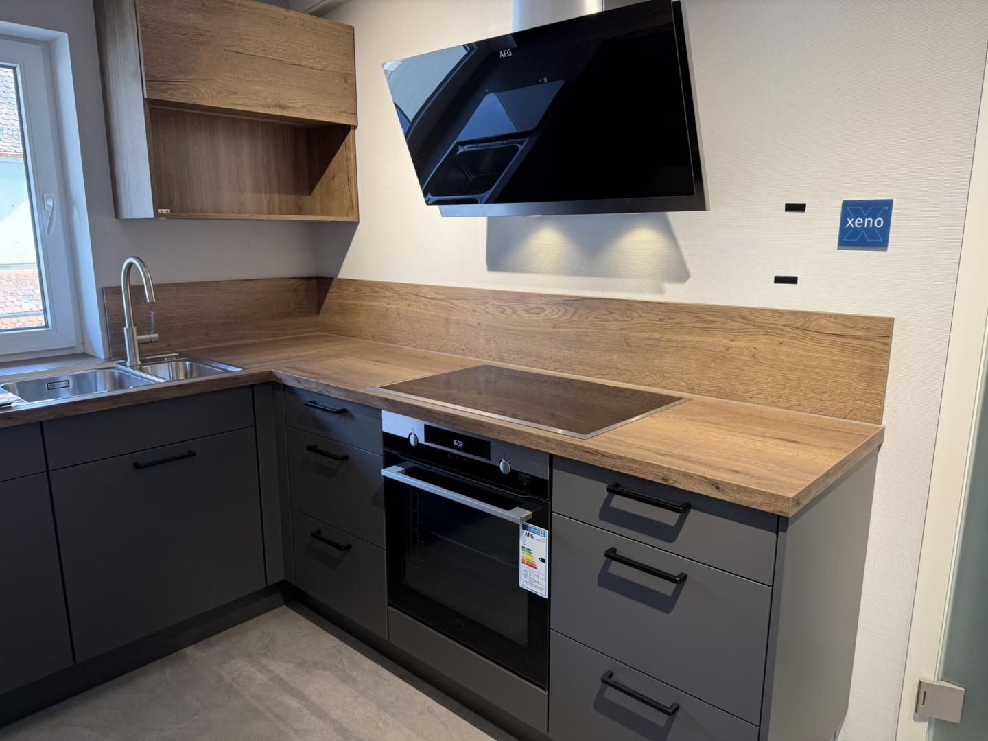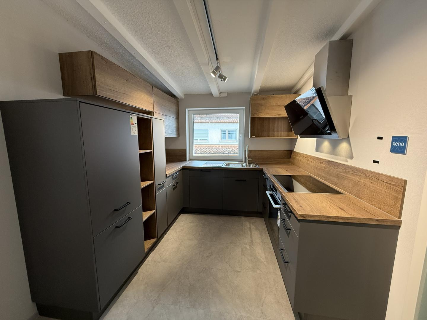 Zum Verkauf steht eine stilvolle, moderne Einbauküche in U- Form mit hochwertiger Ausstattung und viel Stauraum. Die Küche überzeugt durch ihre elegantes Design in Anthrazit mit warmen Holz- Akzenten und bietet sowohl funktional, als auch optisch ein echtes Highlight für jedes Zuhause.